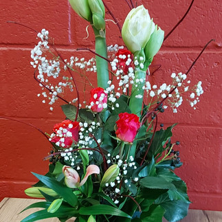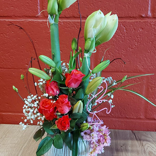 Les fleurs, le feuillage et l'oasis sont inclus dans le prix.